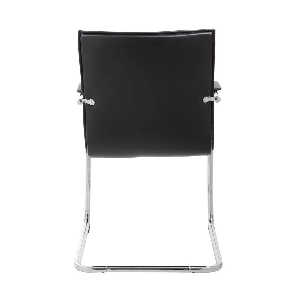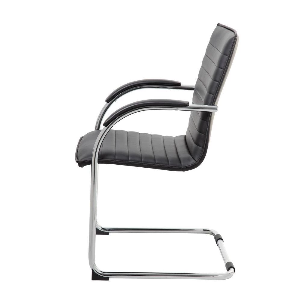 Beautifully upholstered with Black Vinyl. Mid-Back styling with lumbar support and contoured back. Single-piece construction with solid plywood structural frame. Padded foam on seat and back for added comfort. Sturdy chrome tubular steel frame.