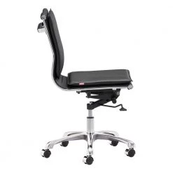 Beautifully upholstered in Bomber Brown LeatherPlus. LeatherPlus is leather that has been infused with polyurethane for added softness and durability. Black arms with padded arm rests. 25 in. nylon base. Hooded double wheel casters. Gas lift seat height adjustment.
