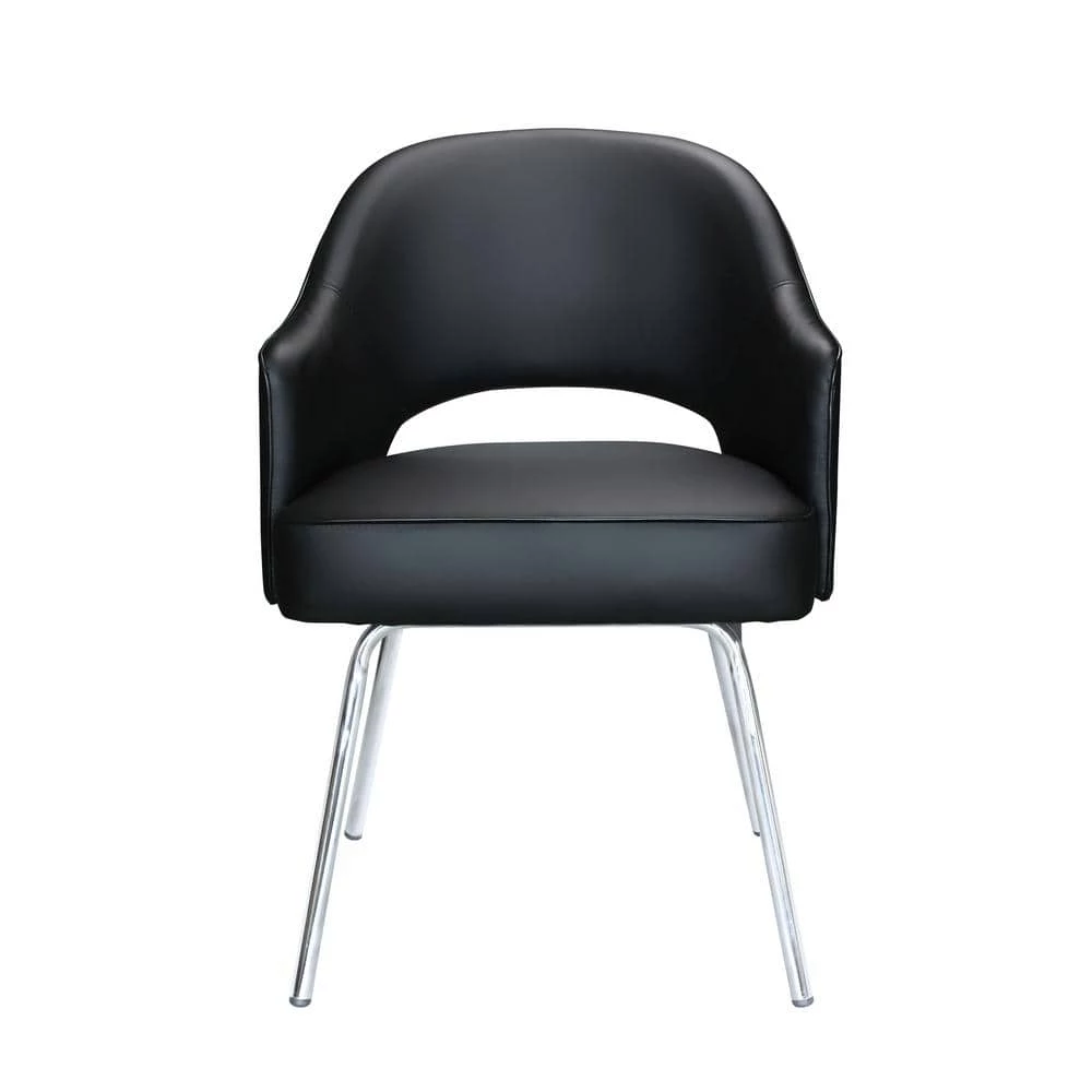 Contemporary Styled Guest Chair. Upholstered in Black CaressoftPlus Vinyl. 4 Sturdy Steel legs with chrome finish.