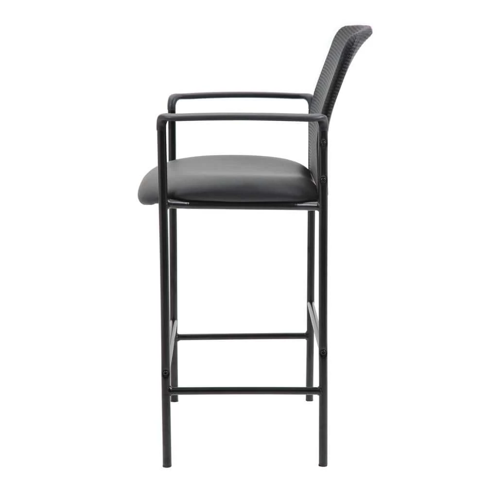 The slender and sleek Contemporary Mesh Back Stool in black is a versatile seat that can be utilized from a drafting stool to guest seating. It is made from sturdy mesh with a Caressoft material on the seat. Caressoft is an upholstery that looks & feels a lot like leather, but is far more durable and can be easily cleaned with a damp cloth. The stool has fixed arms and a 4 leg tubular base made from sturdy black steel which offers a 275 lbs. capacity.