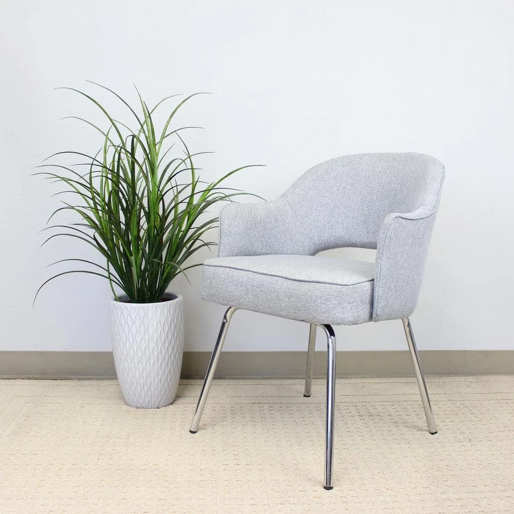 Modern Style Chair. Popular Granite linen fabric. Stylish chrome legs.