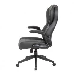 BOSS Office Black High Back Leather Executive Chair with Flip-Up Arms by BOSS Office Products