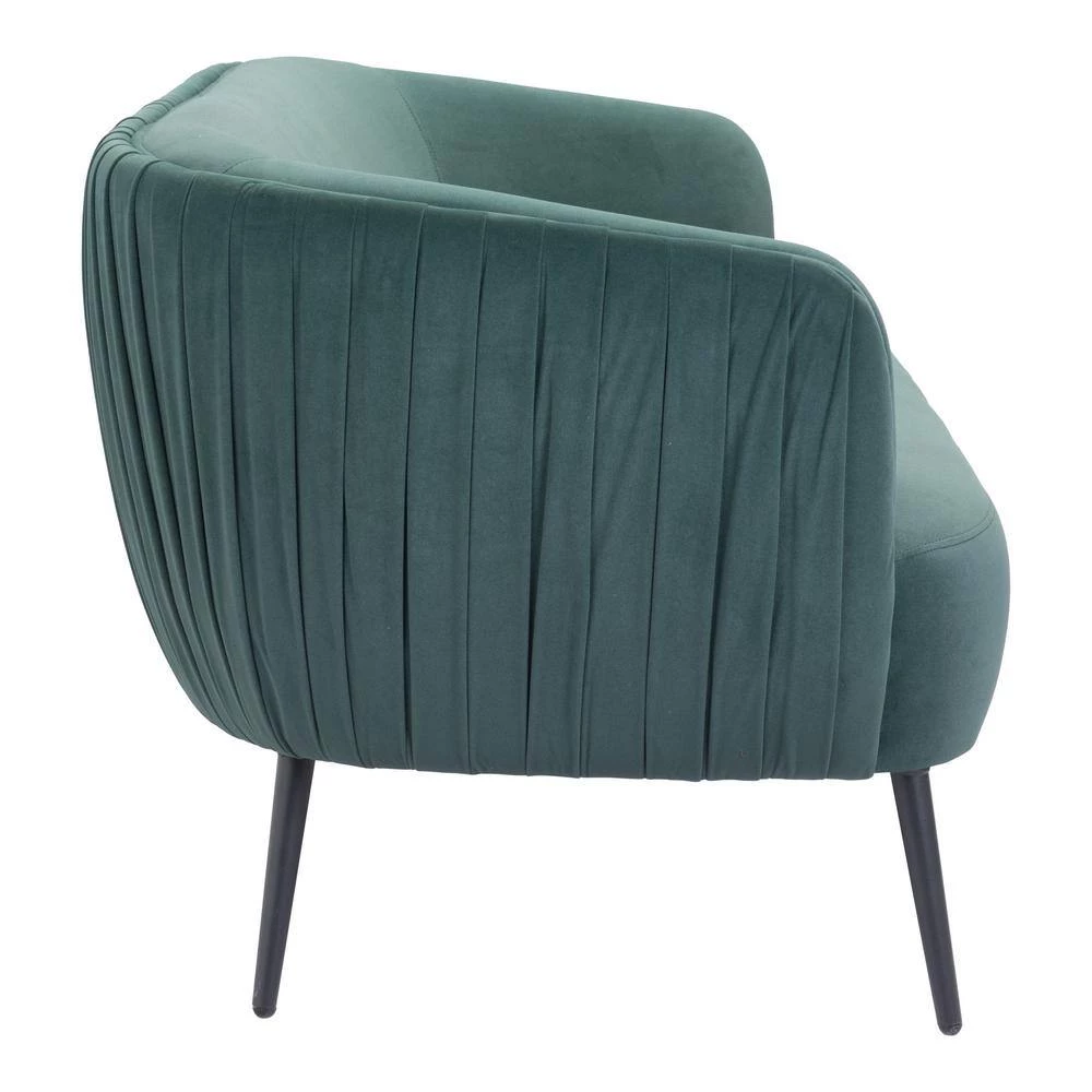 The Karan Sofa has a cute and sophisticated look with a velvet covered seat with pleating on the back and a matte black powder coated steel frame. This modern and glam sofa makes the most of any space, home or hospitality. Traditional, or modern, this sofa is ready to fit seamlessly into your living room.