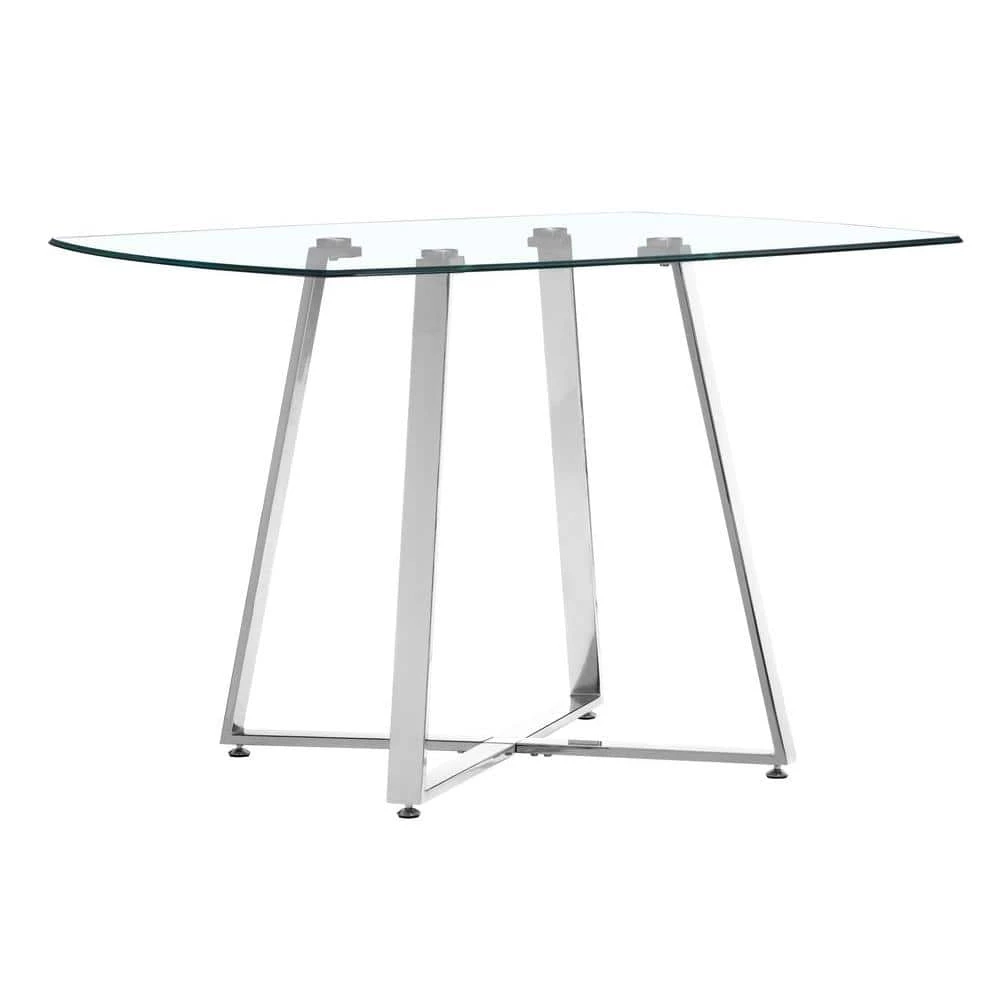 Modernity at its coolest, the Lemon Drop dining table has modern retro sensibility fortified via a tempered glass top and chromed steel base. The table supports up to 250 lbs. The chrome finish fits every dining room.
