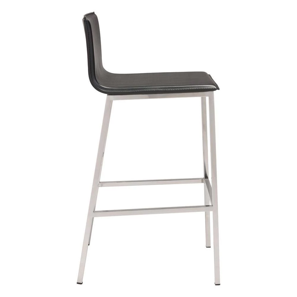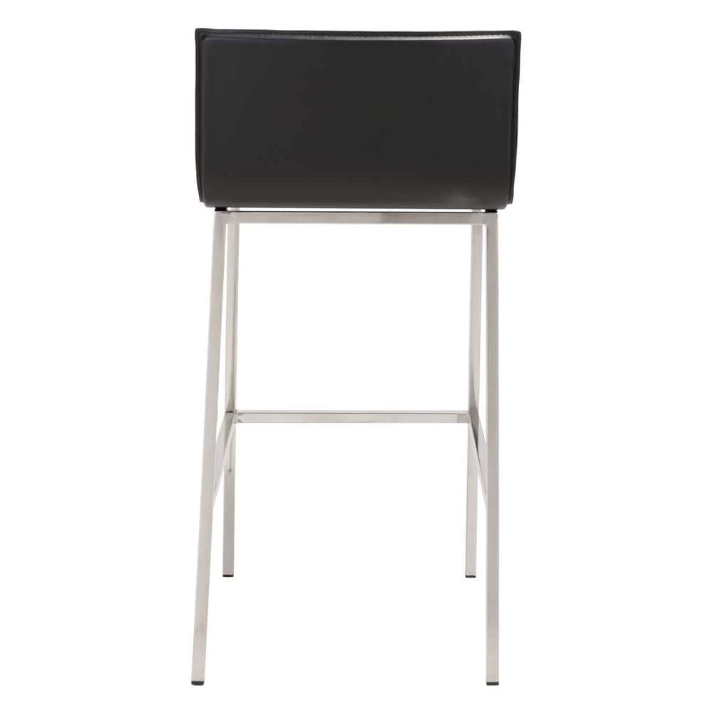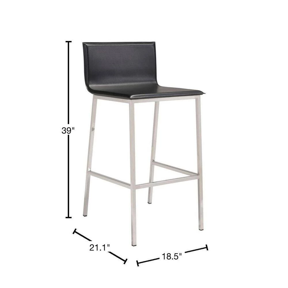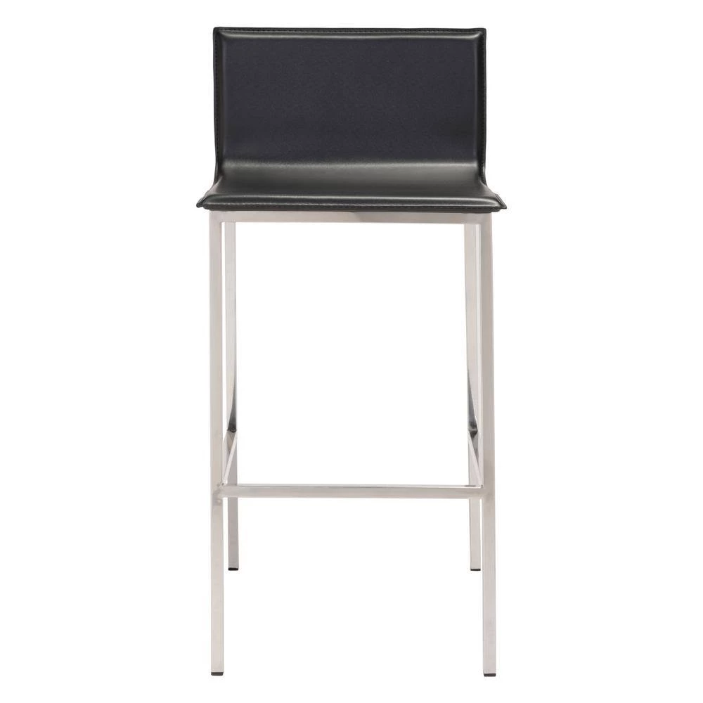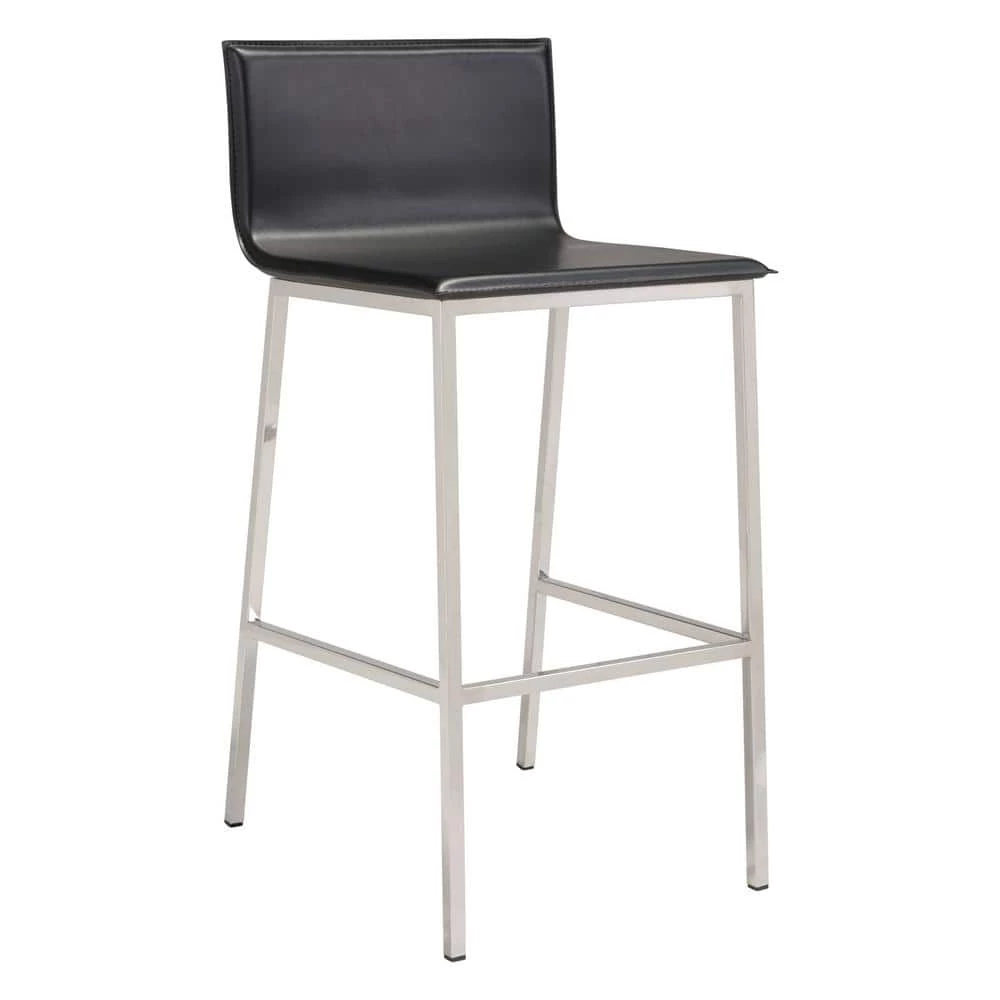 Complement your kitchen or bar decor with the ZUO Marina Bar Stool. This stool has an armless design, so you can tuck it under the table or bar. It features a low back, which will easily slides completely under the bar. Featuring a modern style, this stool is great for transforming your decor. The frame is made from metal, so it can stand up to frequent use. This bar stool has a faux leather seat, which is great for adding a stylish touch to any room. Designed in black, it will match with the rest of your home decor. It has a foot rest, providing you with a place to put your feet while sitting.