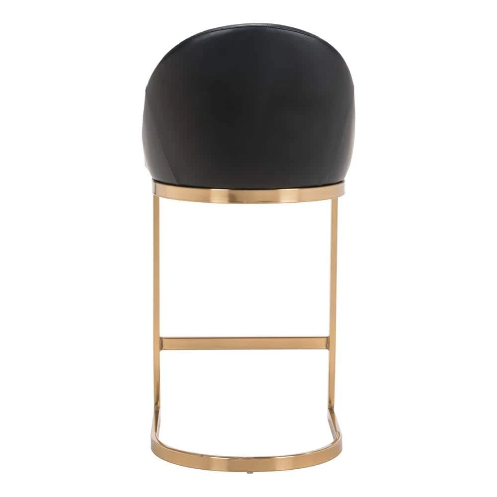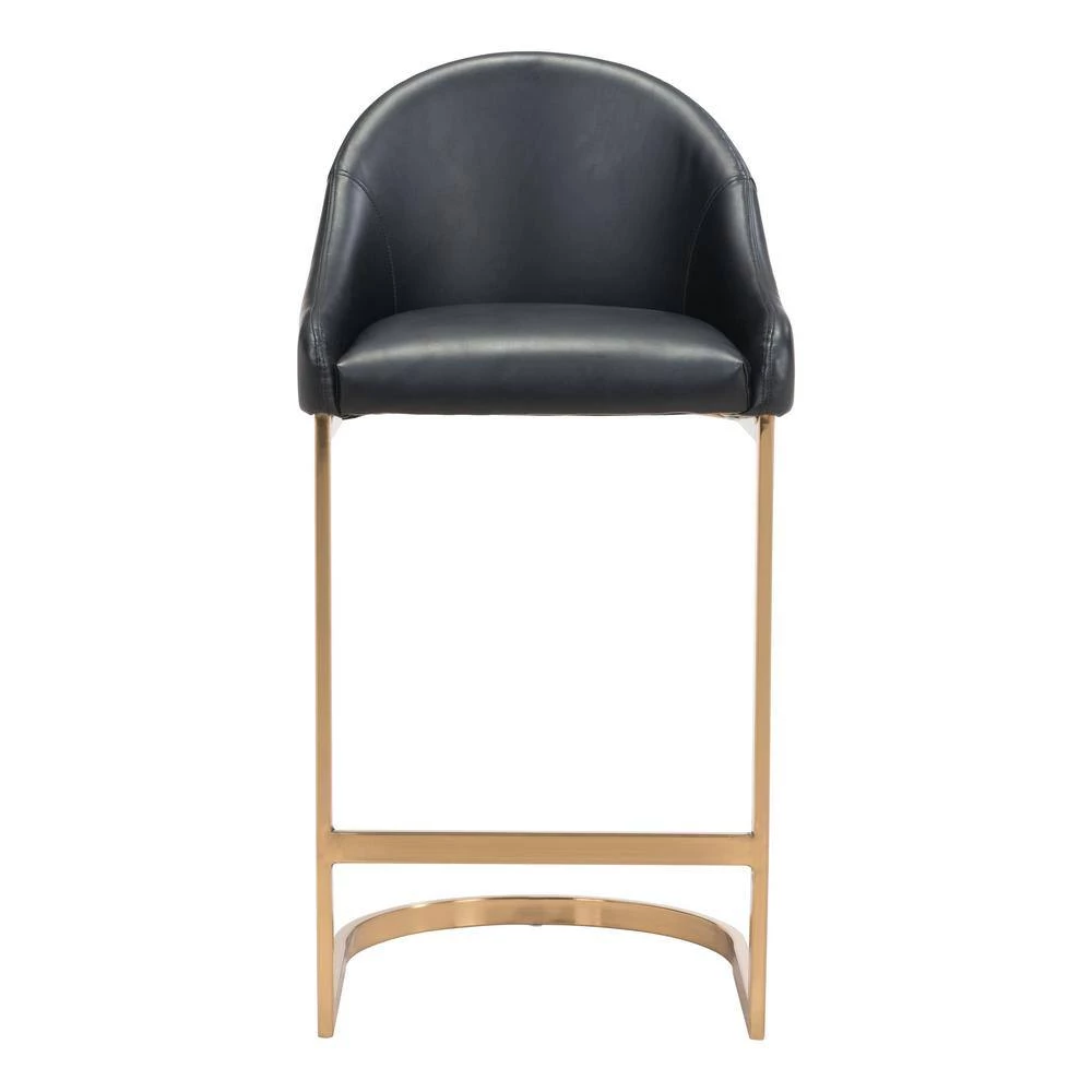 Modern deco in design, the Scott Counter Chair is wrapped with either polyester or vinyl on a gold electroplated steel base. This chair works well in any sophisticated kitchen or bar.