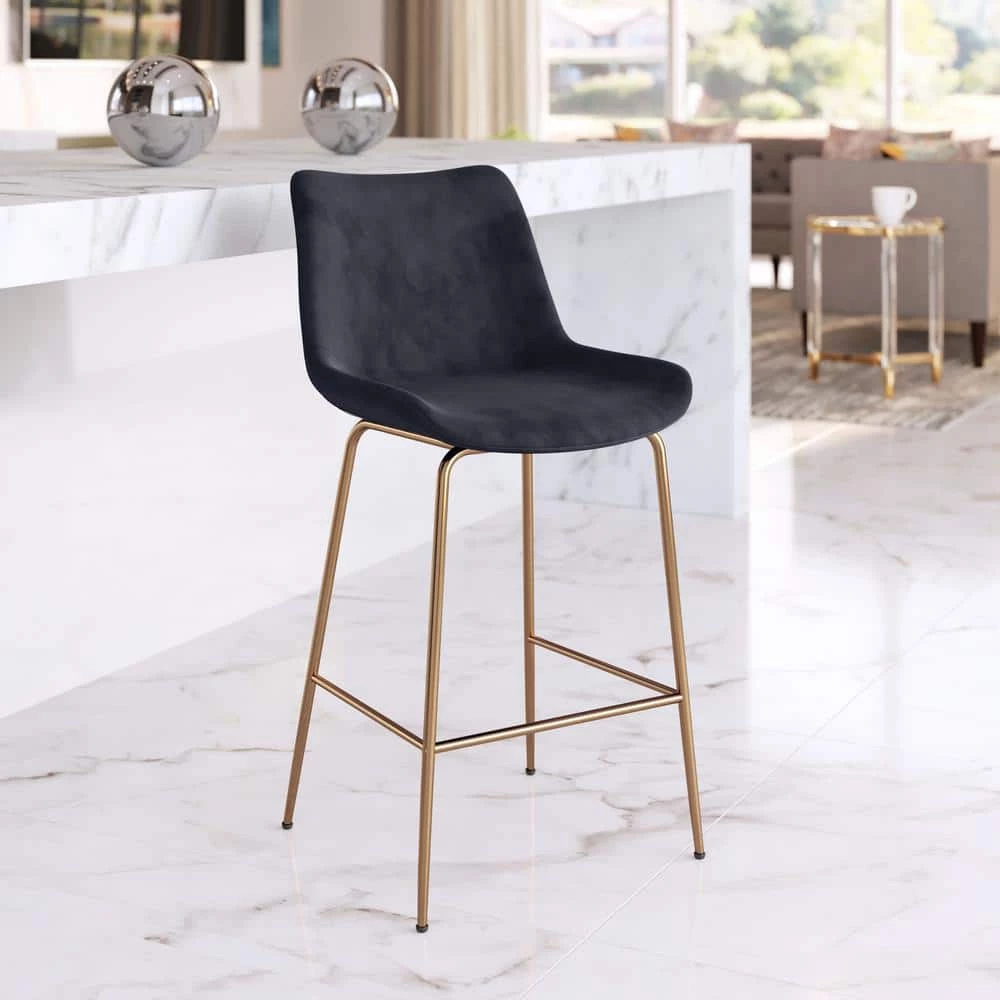 The Tony Counter Chair has glam and maximalist design and looks great in any space from modern to boho chic. The solid steel frame is electroplated with a gold finish and the firm seat and back are covered in a smooth velvet polyester fabric. This counter chair fits great in any home kitchen or bar as well as any hospitality setting like a restaurant.